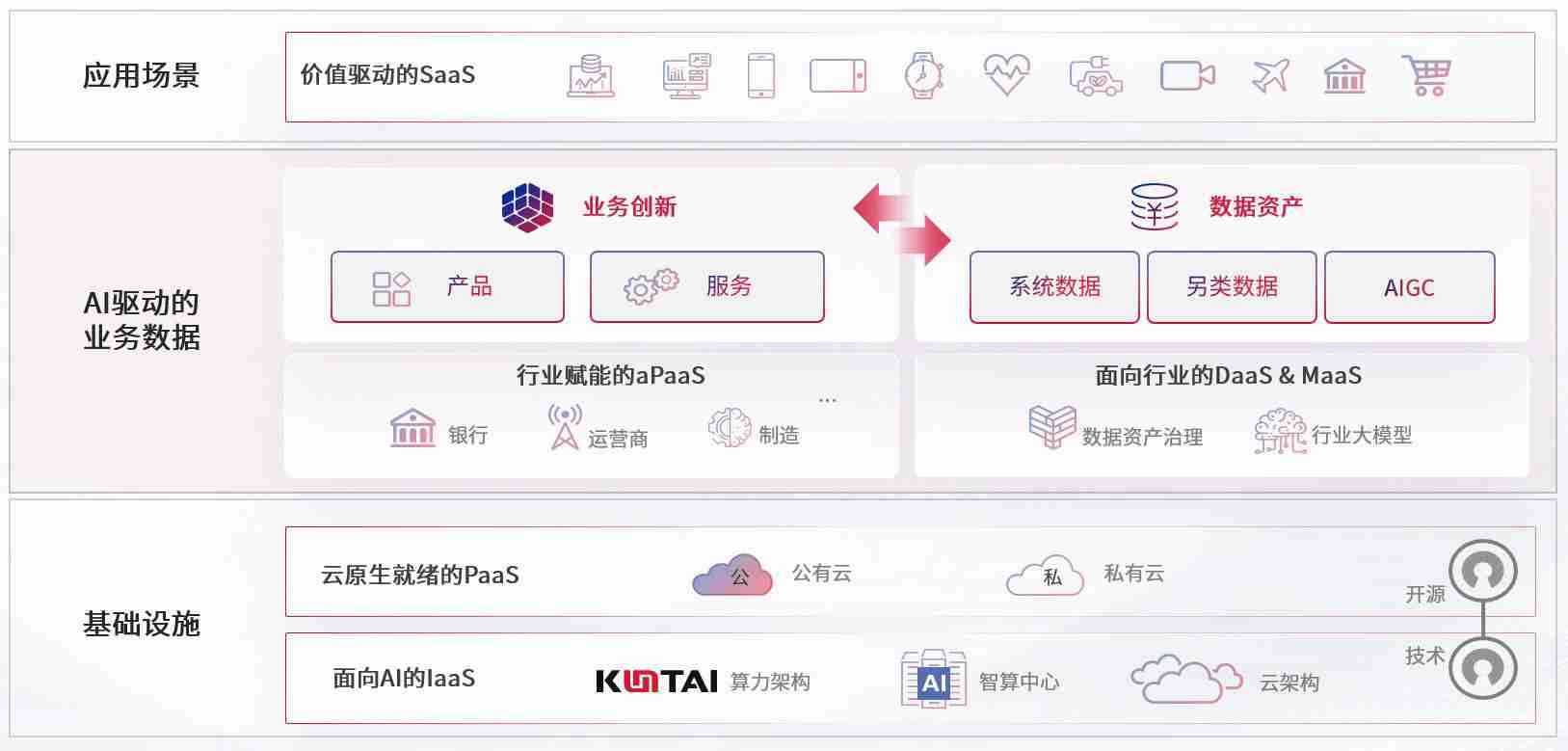 数字时代,,,,围绕企业数字化转型的关键要素,,,,EBPAY钱包数码开创性的提出数云融合战略和技术体系框架,,,着力在云原生、、、、数字原生、、、、AI原生和信创产业上架构产品和服务能力,,为处在不同数字化转型阶段的快消零售、、汽车、、、、金融、、、、医疗、、政企、、、教育、、、、运营商等行业客户提供泛在的敏捷IT能力和融合的数据驱动能力,,,构建跨界融合创新的数字业务场景和新业务模式,,,,助力企业级客户建立面向未来的核心能力和竞争优势,,,全面推动社会的数字化、、、智能化转型升级。。